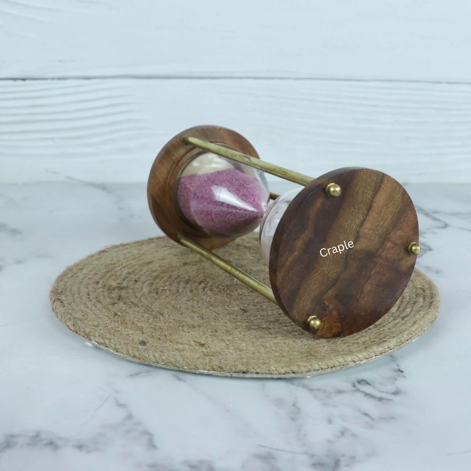 This beautifully crafted hourglass combines the warmth of polished wood with the gleam of shiny brass. It’s more than a timer; it’s a piece of classic desk art offering a serene visual cue for approximately three minutes.