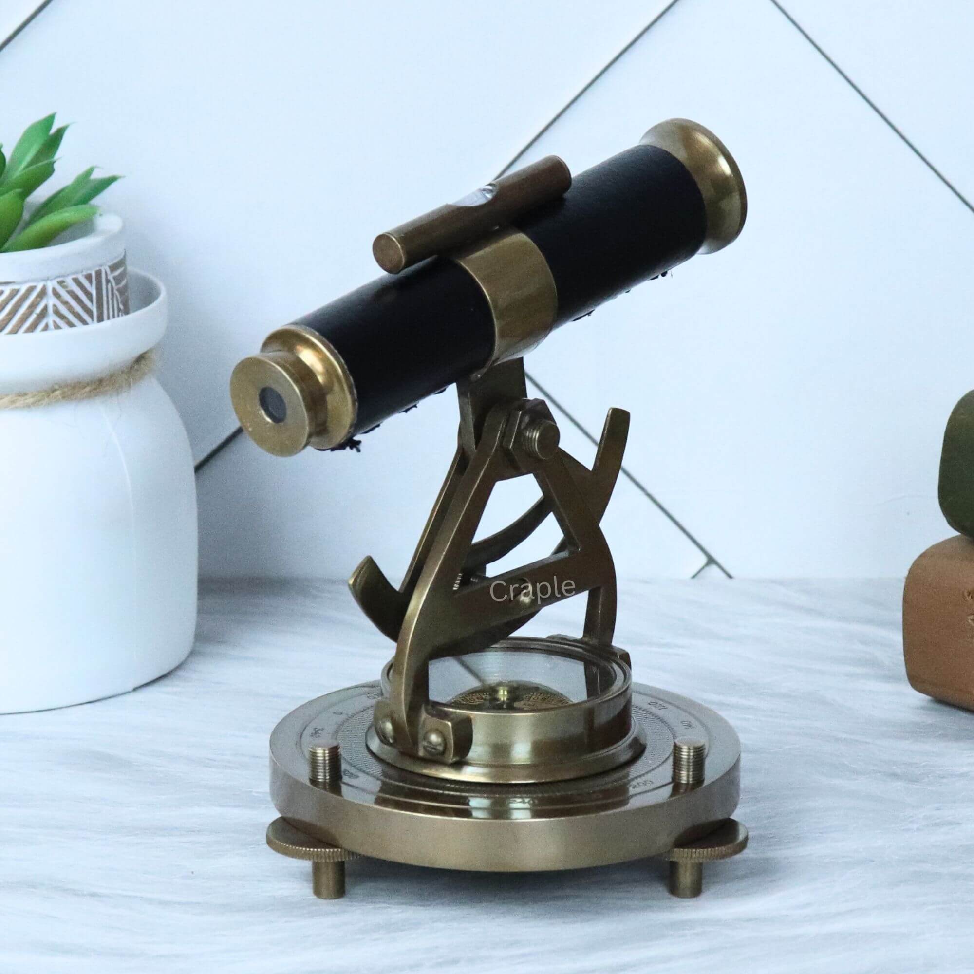Handmade Antique Brass Telescope with Functional Compass & Level | Nautical Decor & Gift