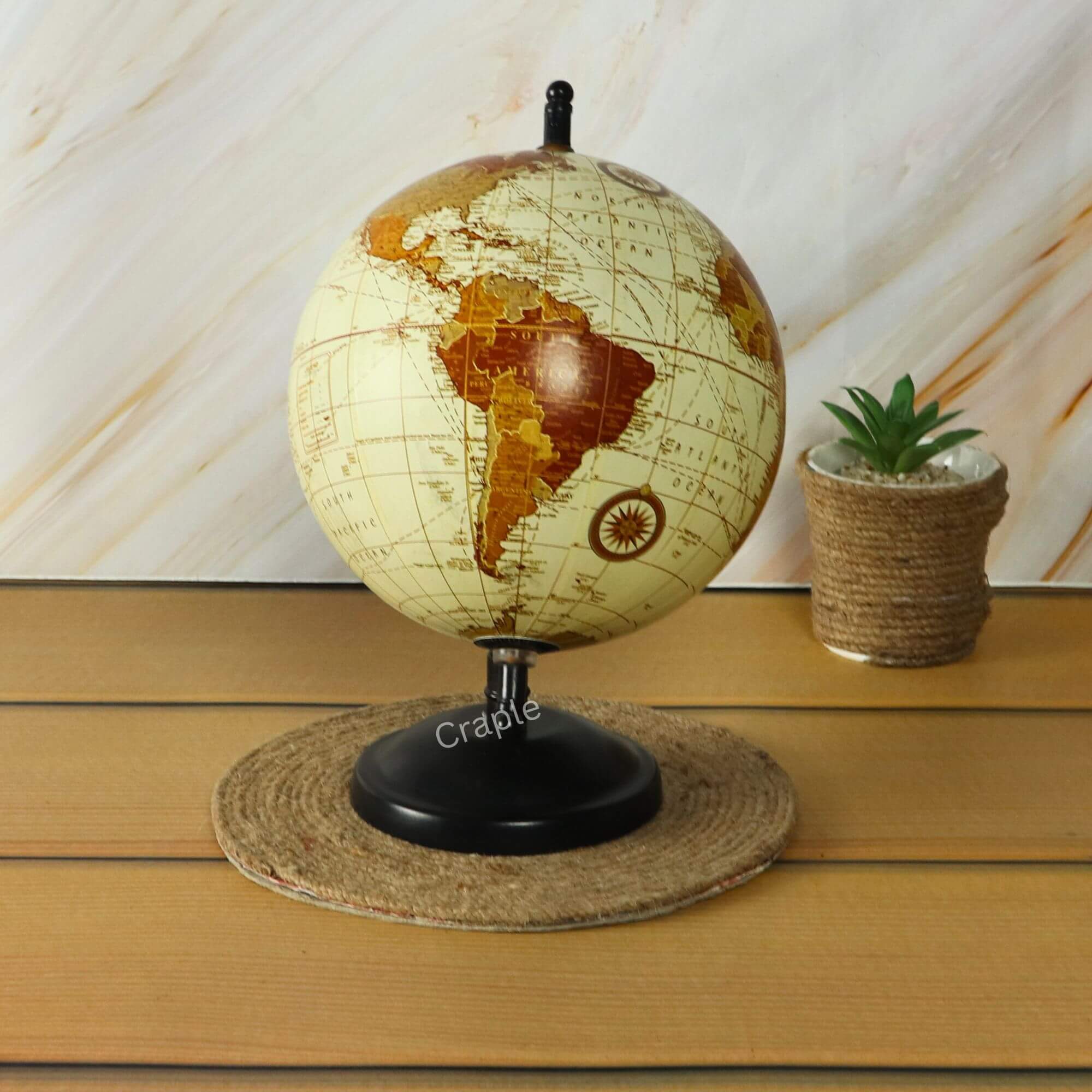 • Vintage-Style World Map: The globe sphere displays a clearly printed map with vintage coloring, suitable for quick geographical reference or simply sparking wanderlust.
