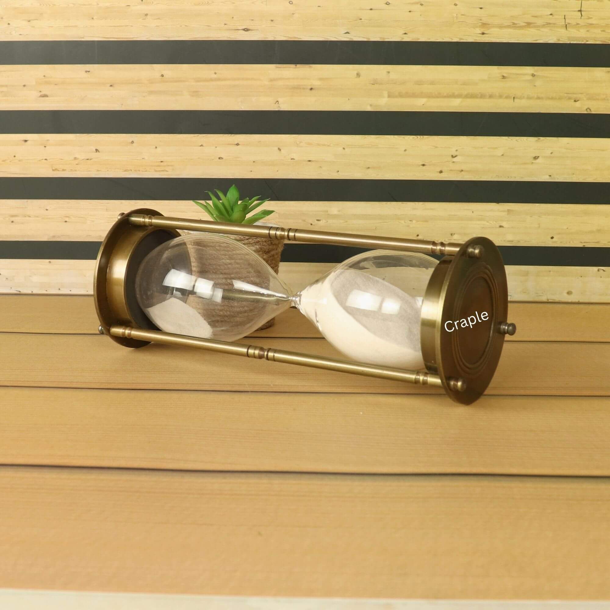 Gracefully measuring time in a full 60-minute cycle, this antique brass sand timer combines vintage elegance with practical purpose. Its gleaming glass hourglass, set within a refined, old-world brass frame, delivers a rich visual appeal that complements both modern and traditional interiors.
