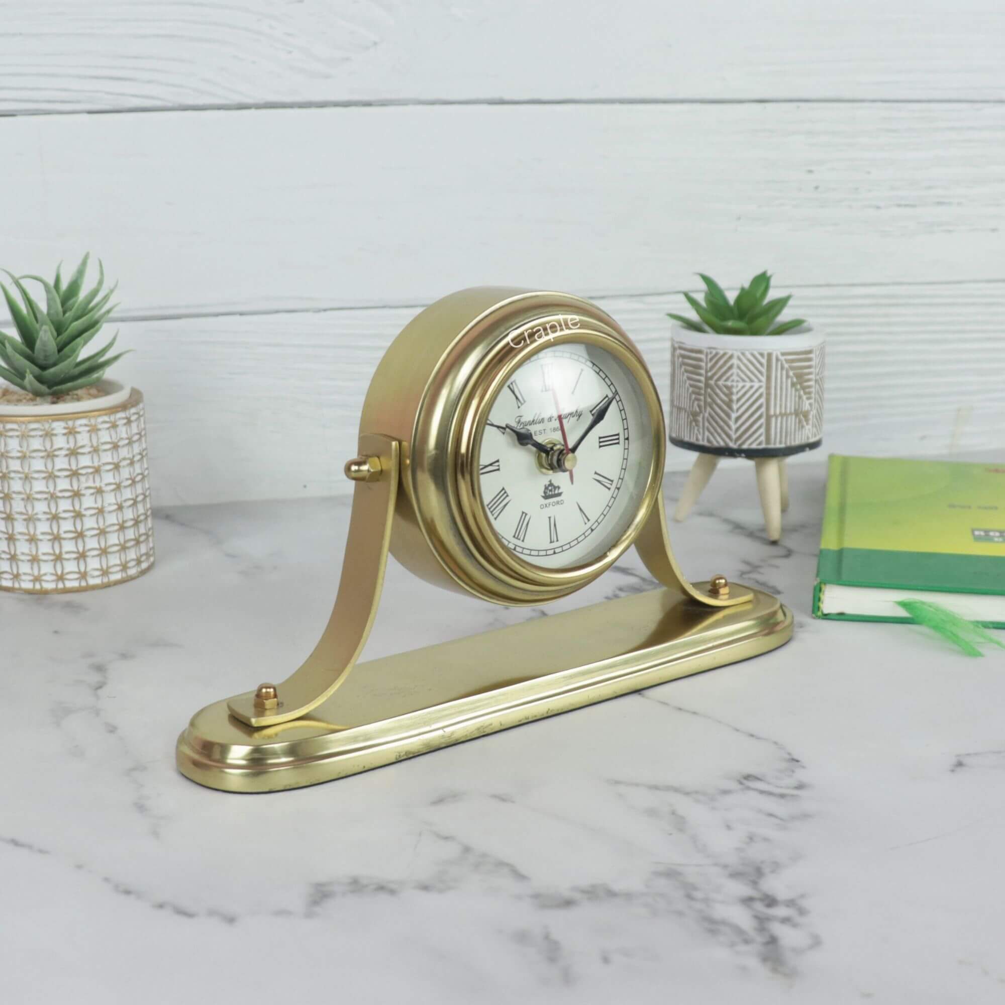 - Lustrous Golden Finish: Features a bright, consistent golden finish across the clock face casing and stand, adding a touch of warmth and luxury.