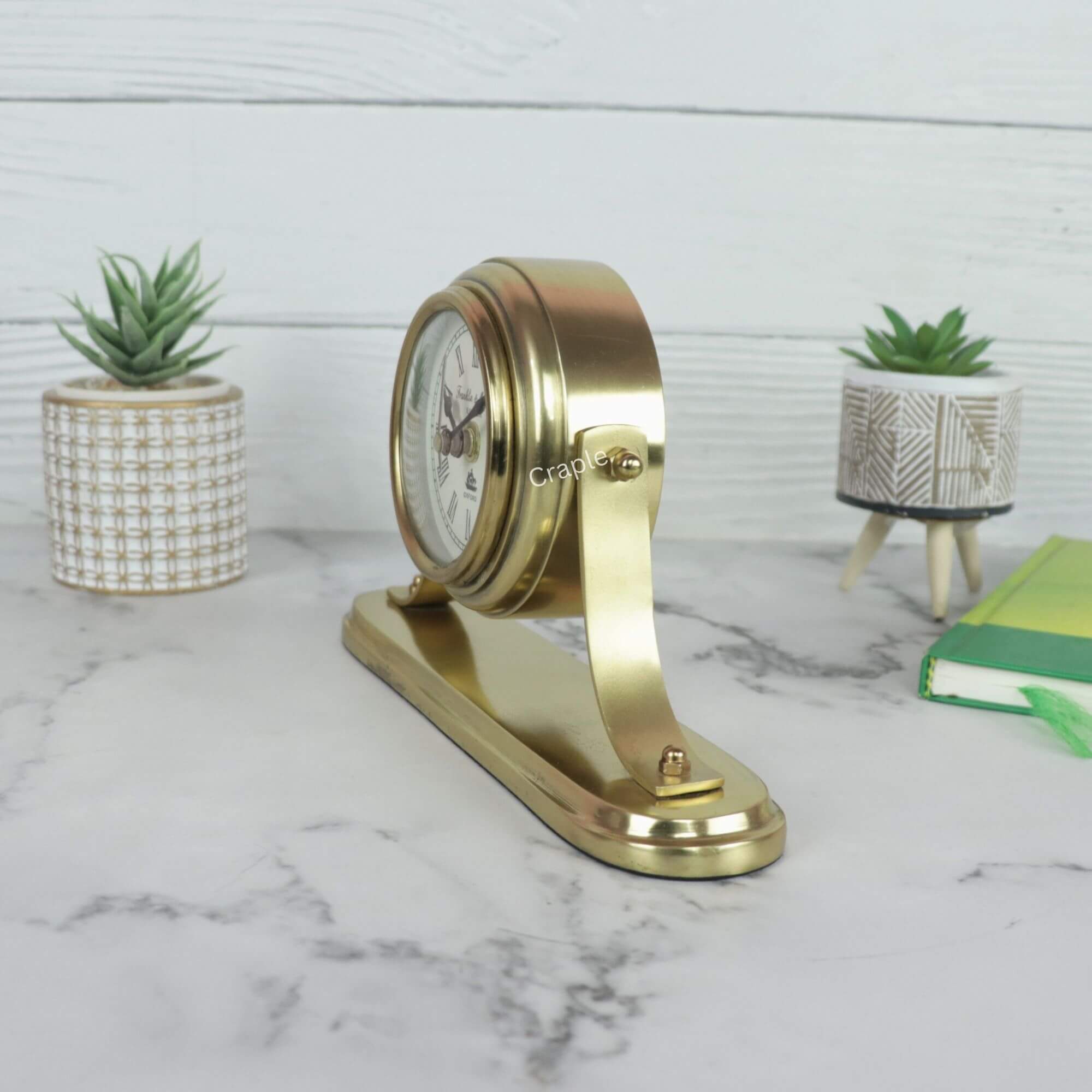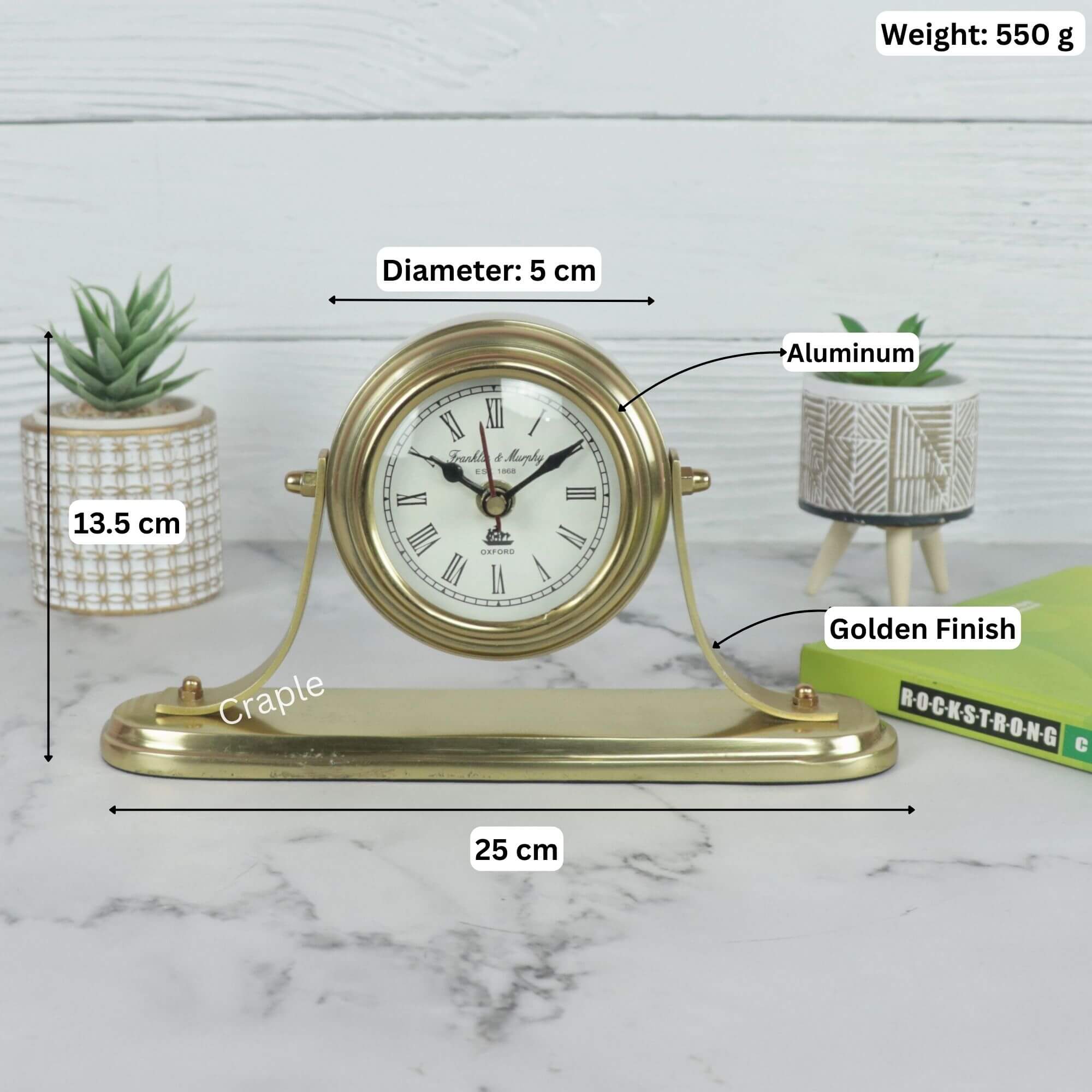 Sleek Golden Aluminium Desk Clock | Handcrafted, Tilting Design | Franklin & Murphy Style, Elegant Decor & Gift