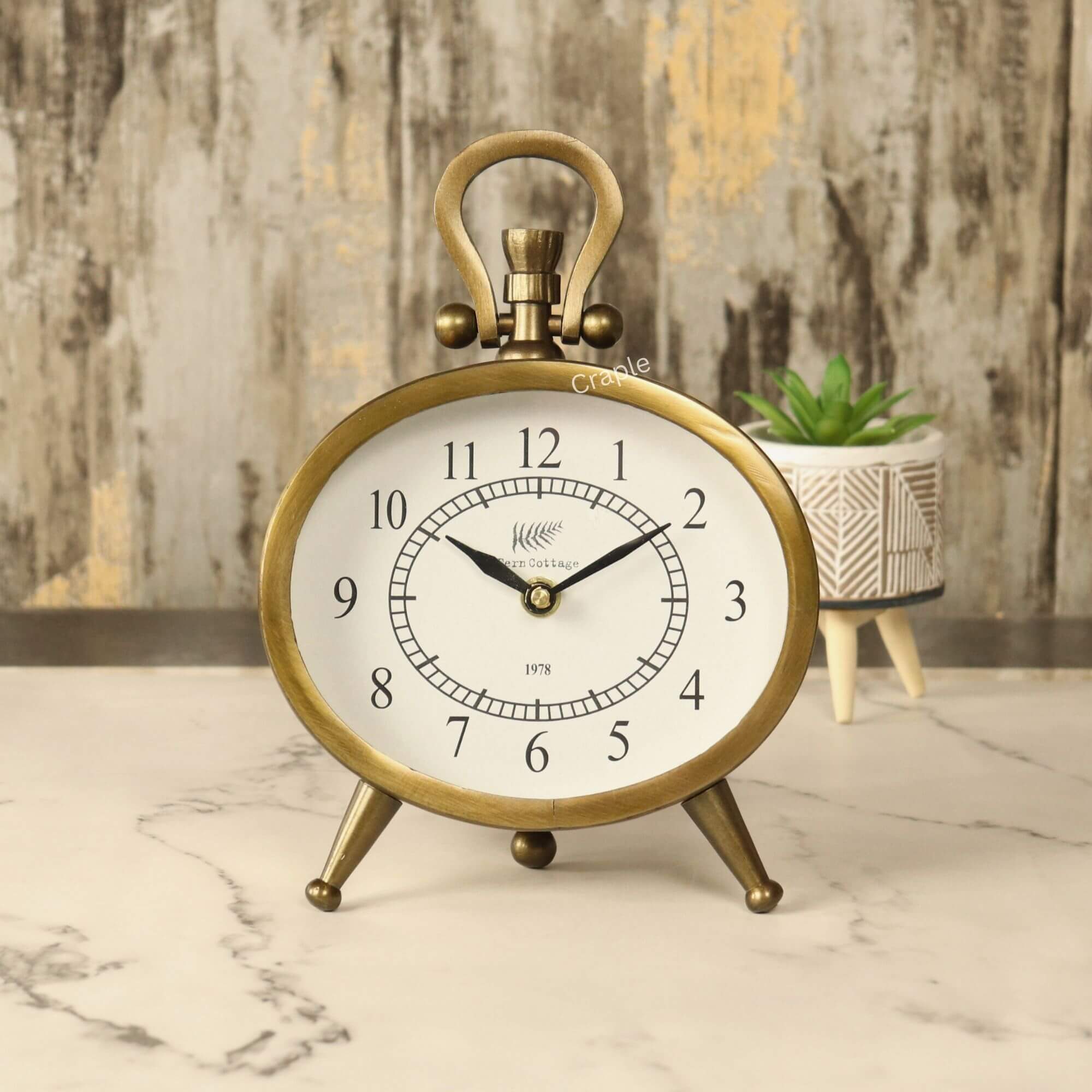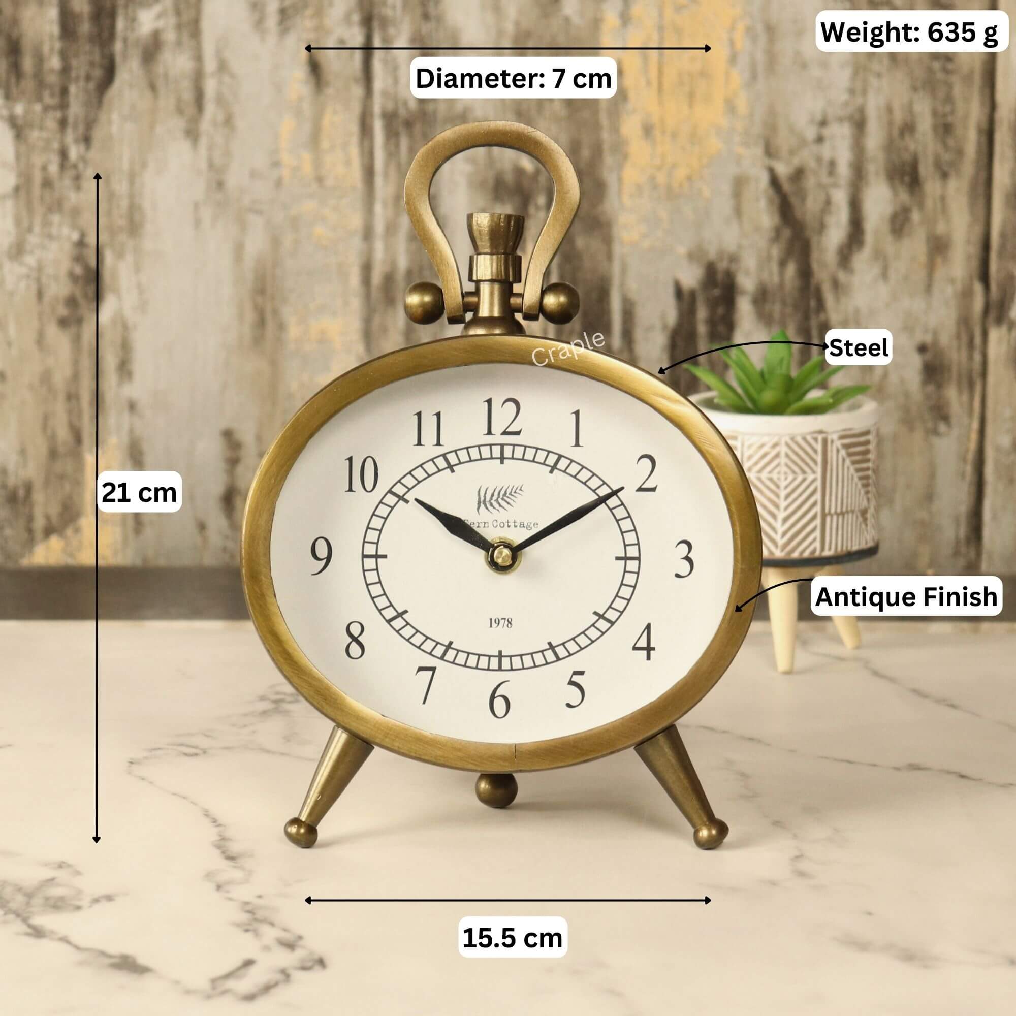 Step away from the standard circle with this beautifully crafted oval clock. Its warm antique finish on durable aluminium provides a sophisticated vintage aesthetic, perfect for adding character to desks, shelves, or walls.
