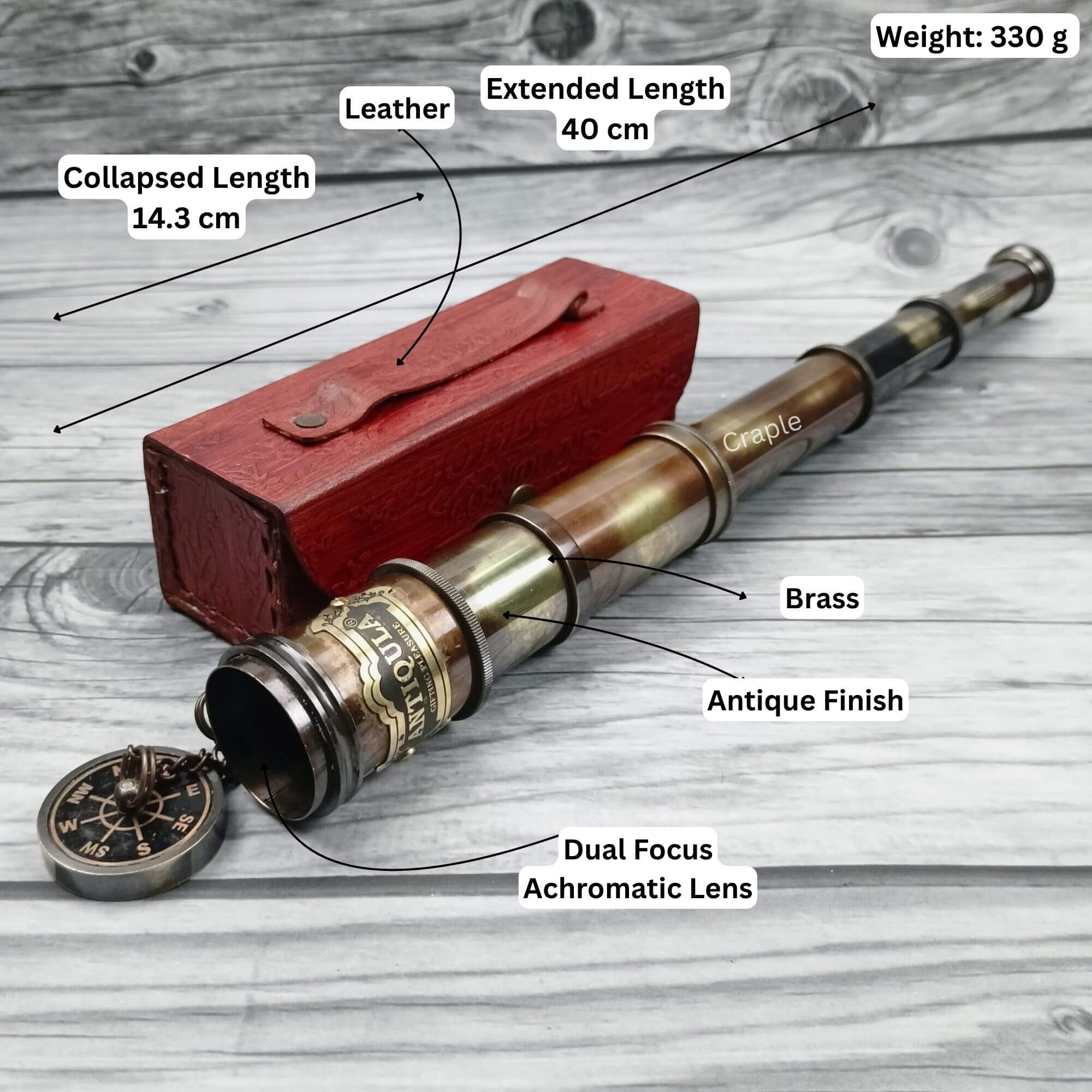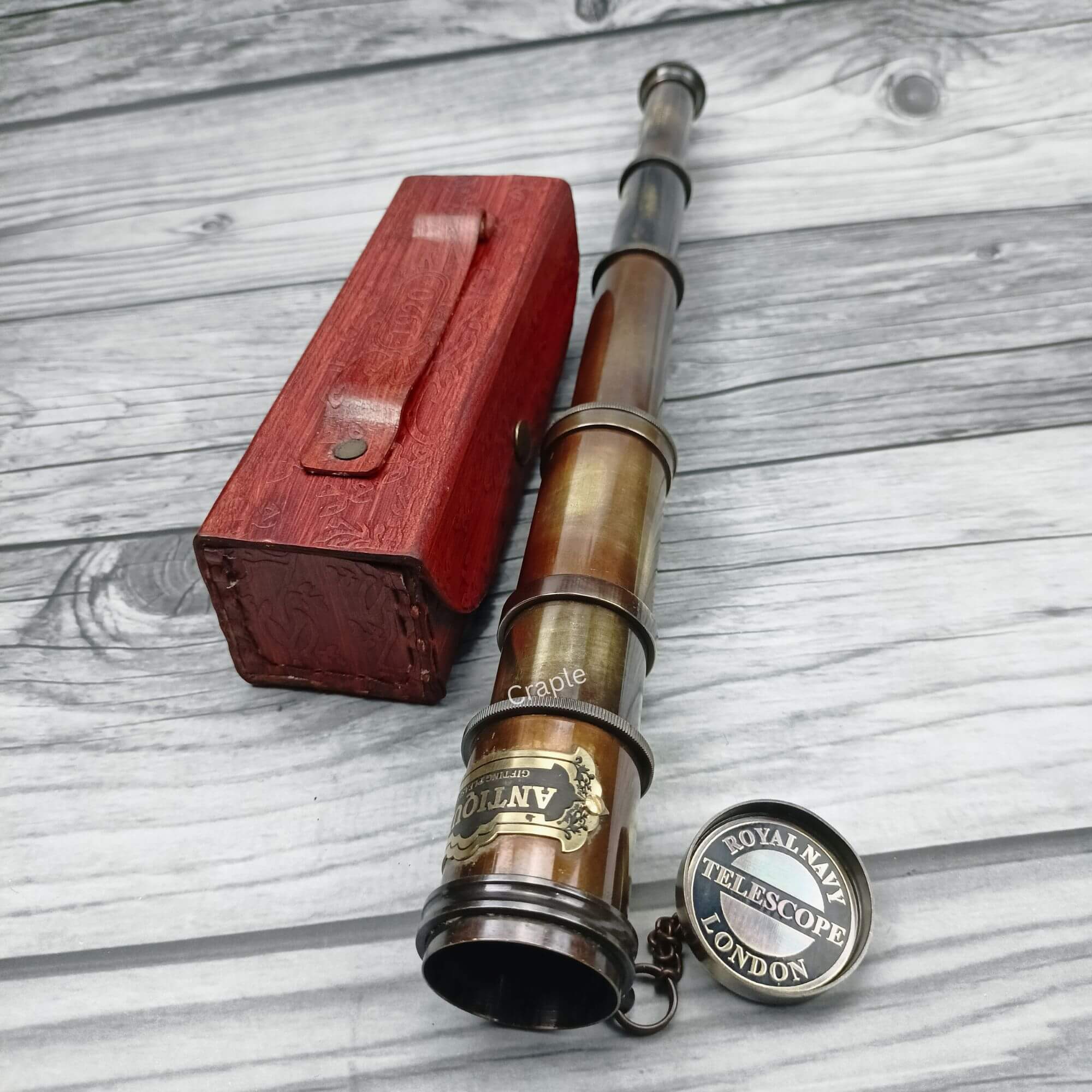 Journey back to the age of sail with this finely crafted Royal Navy telescope. Made from solid brass with an authentic antique finish and thoughtful details, it embodies the spirit of classic maritime instruments.