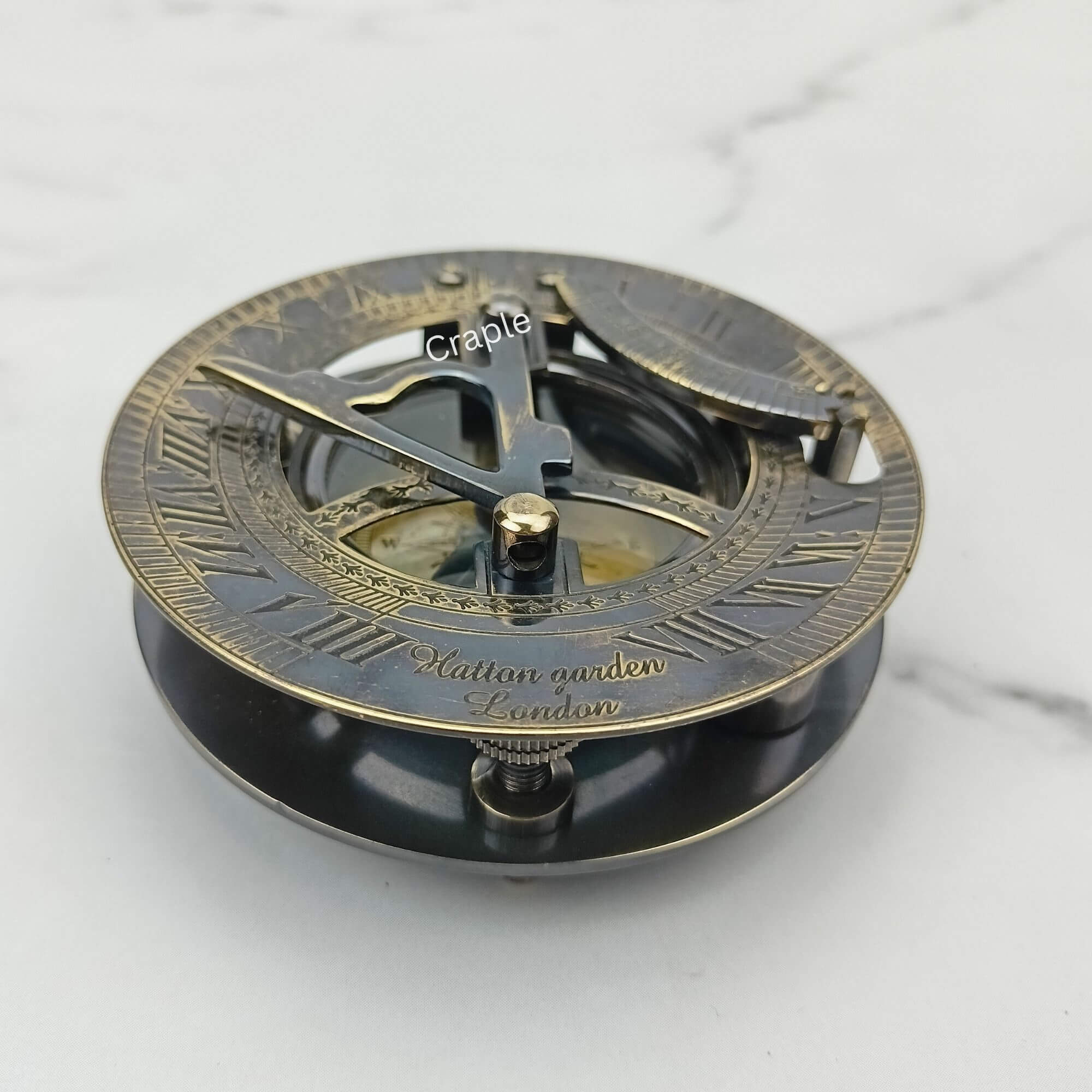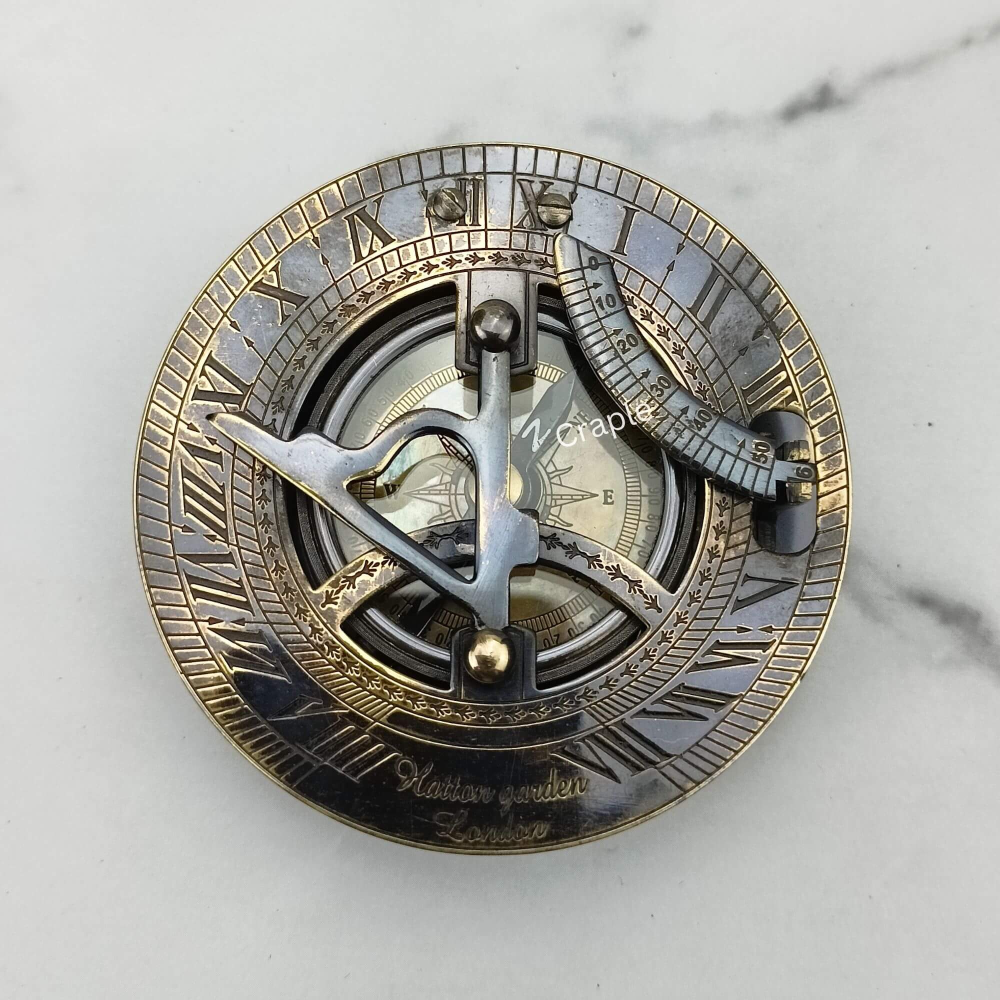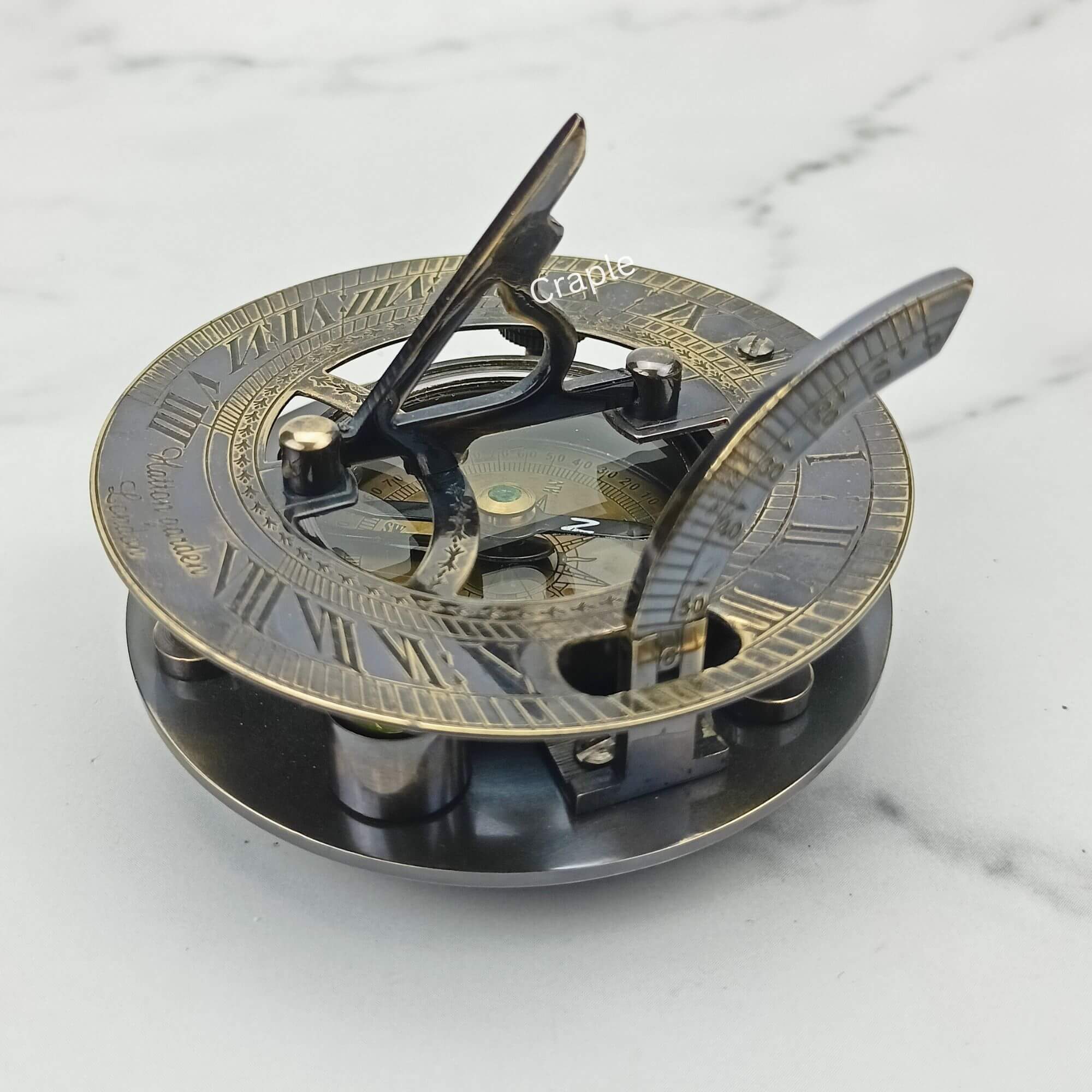 - Dual Navigational Capability: Features a beautifully detailed, foldable sundial with an engraved chapter ring (often with Roman numerals) and a latitude arc for solar time measurement, paired with a reliable and precise magnetic compass for accurate orientation.