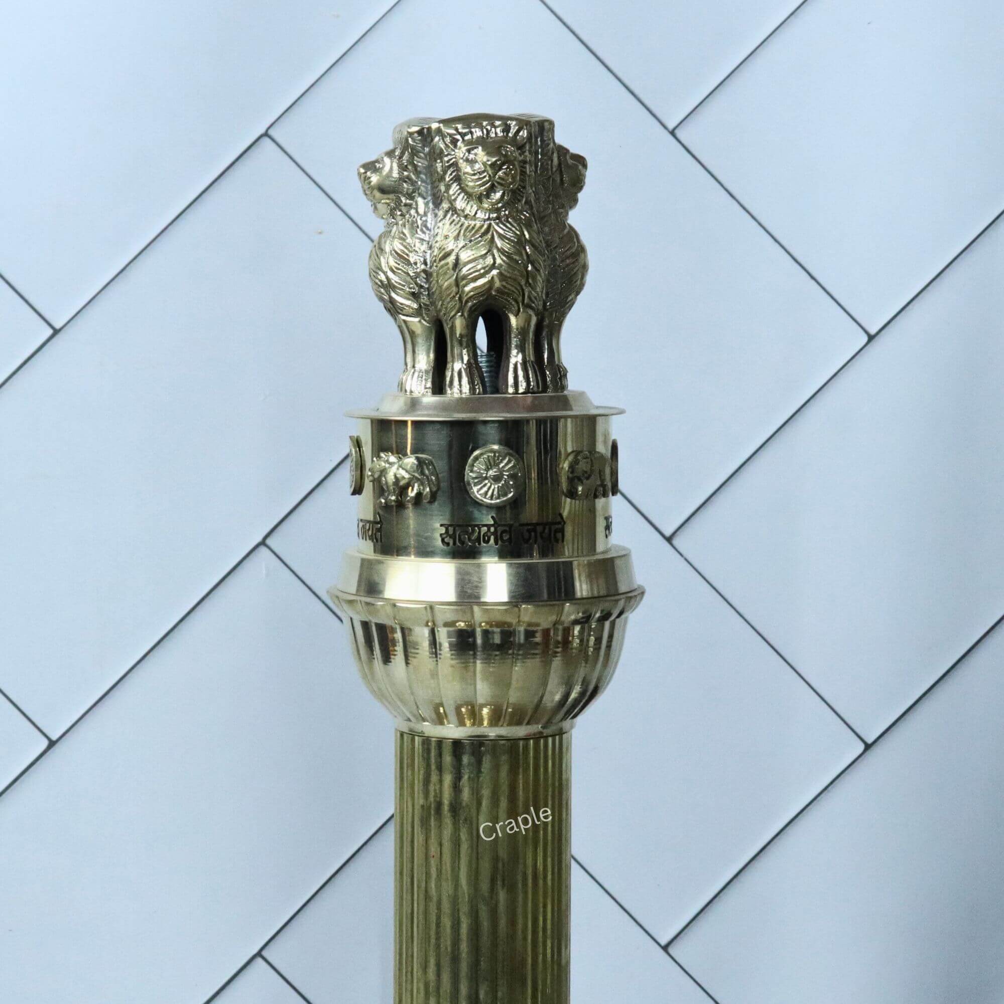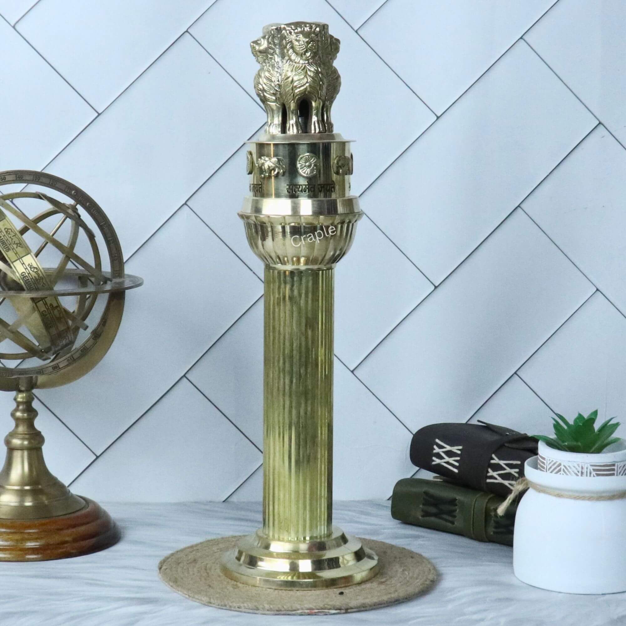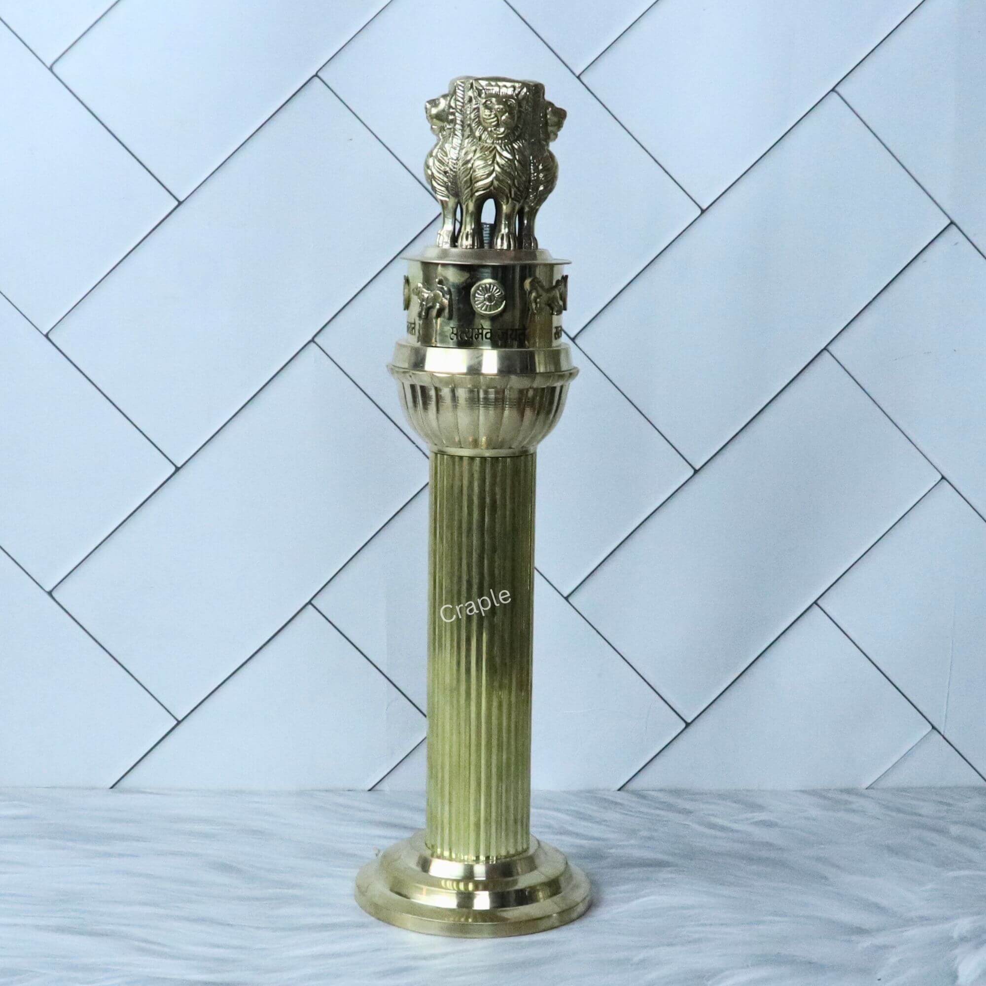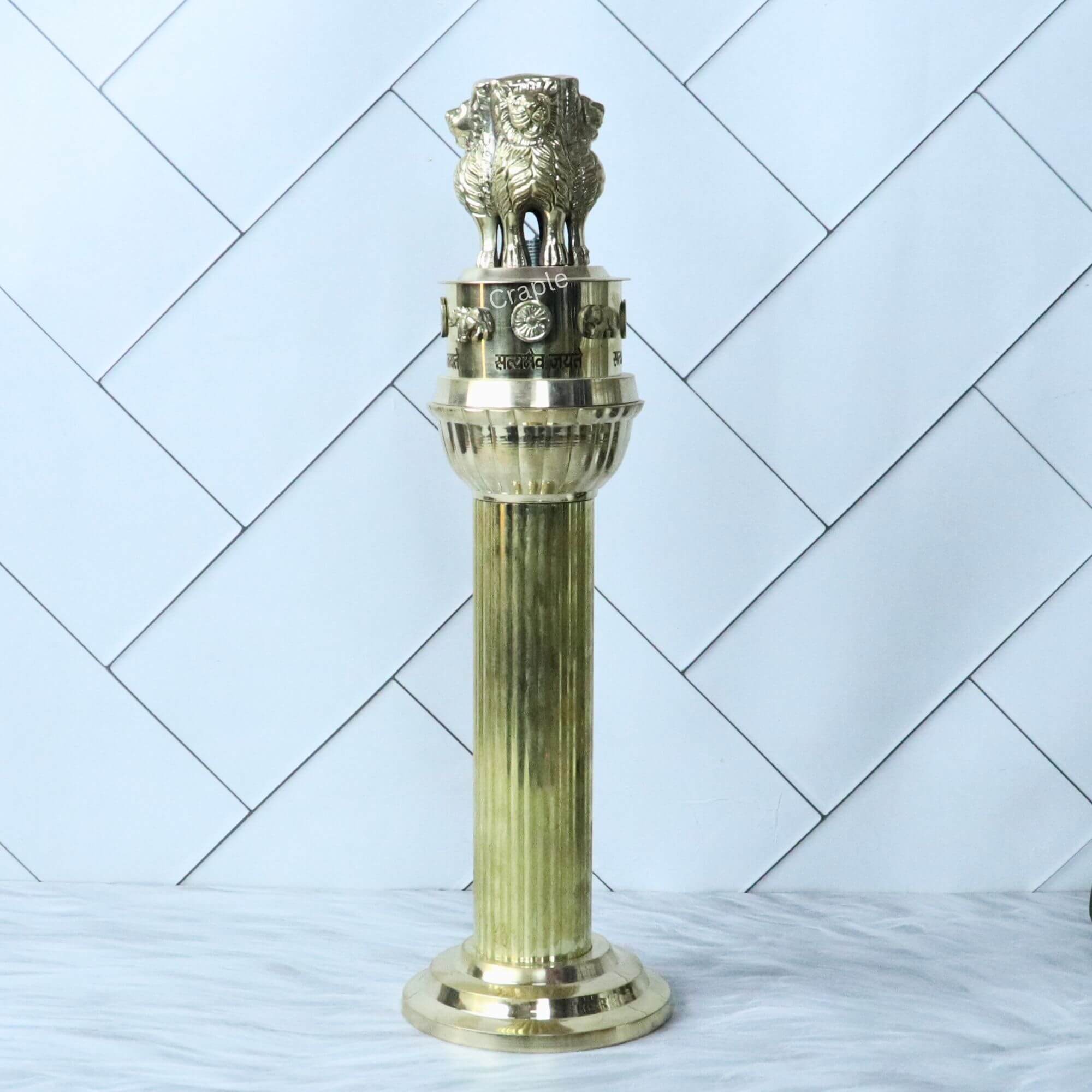 Grand Tall Brass Ashoka Pillar Sculpture | Majestic National Emblem Replica, Fluted Column | Prestigious Office Decor & Patriotic Gift
