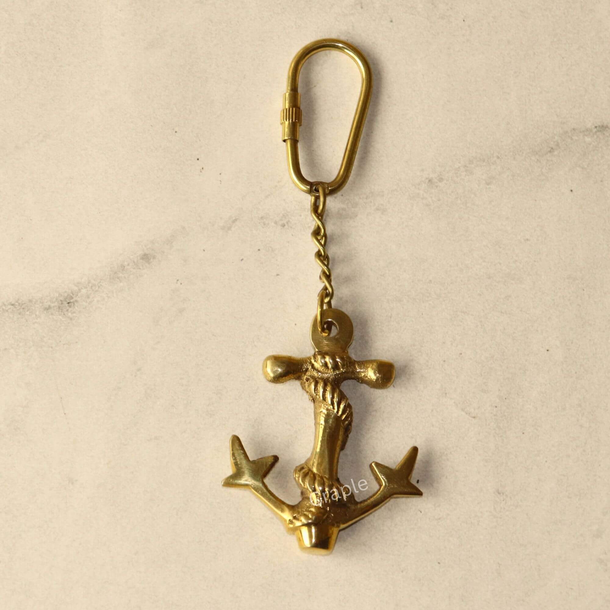 Secure your keys with serious nautical style! This handmade brass anchor keychain boasts intricate rope detailing and a solid, heavy feel. A standout accessory or a substantial gift for marine enthusiasts.