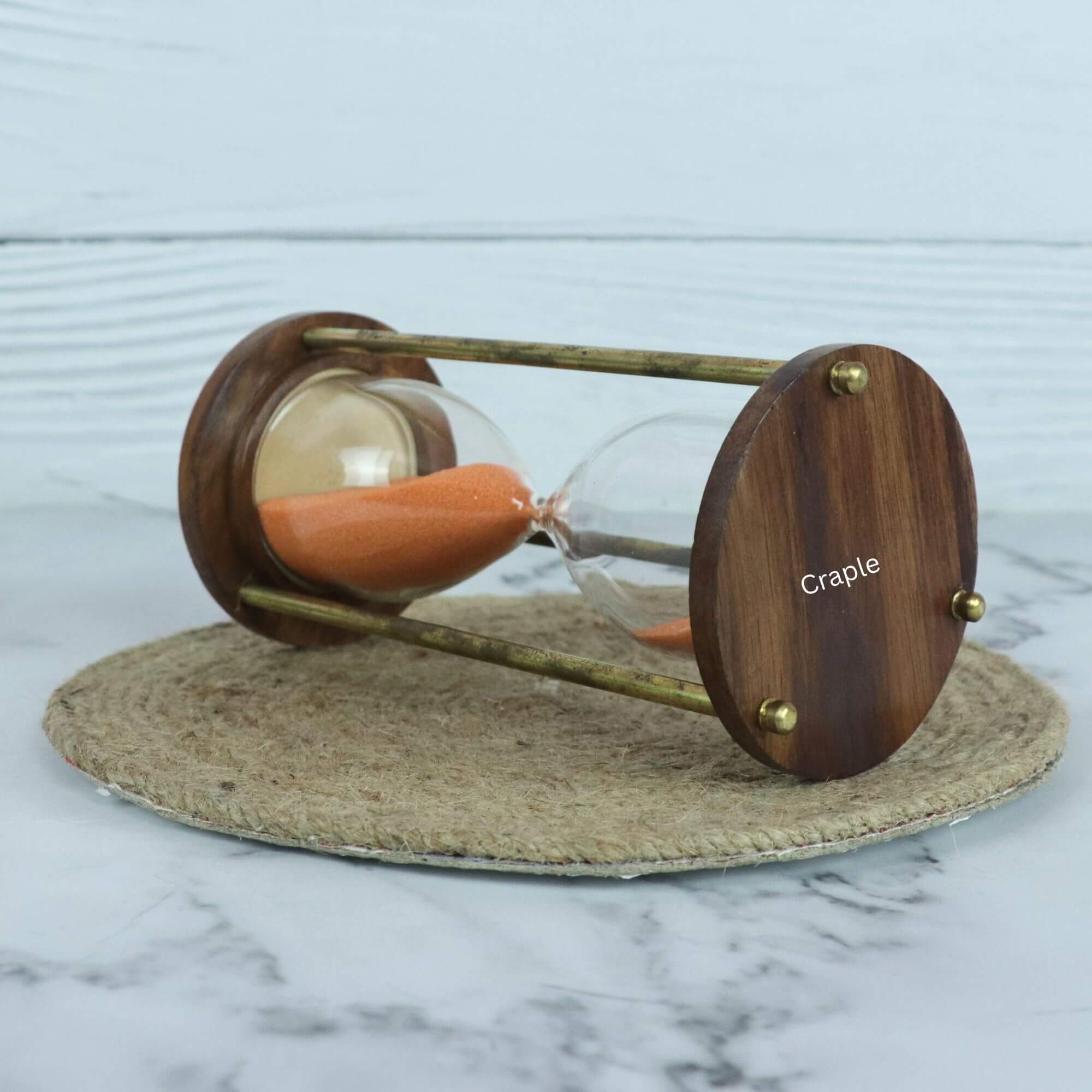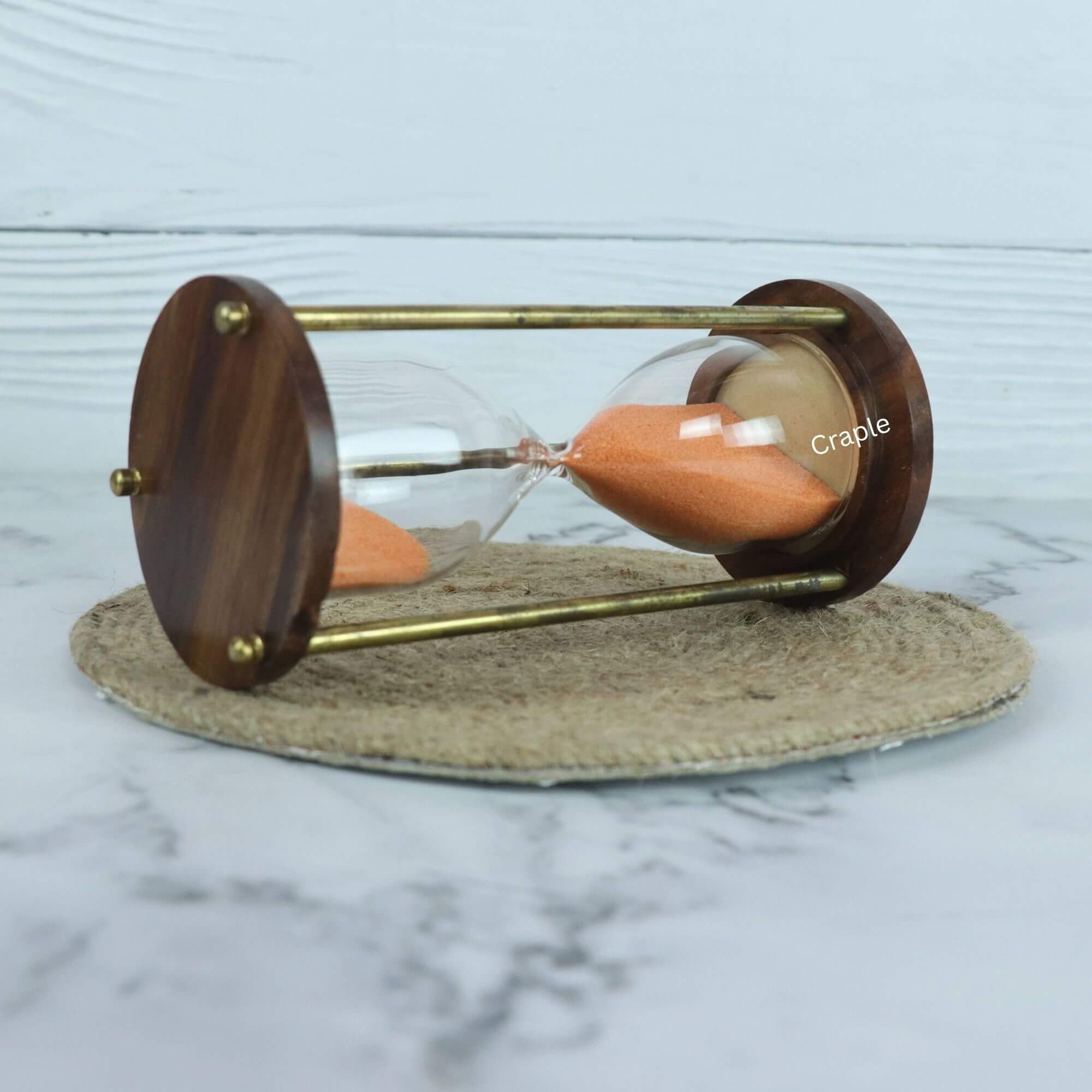 Nautical Marine Handcrafted 5 Minutes Brass & Wood Hourglass | Orange