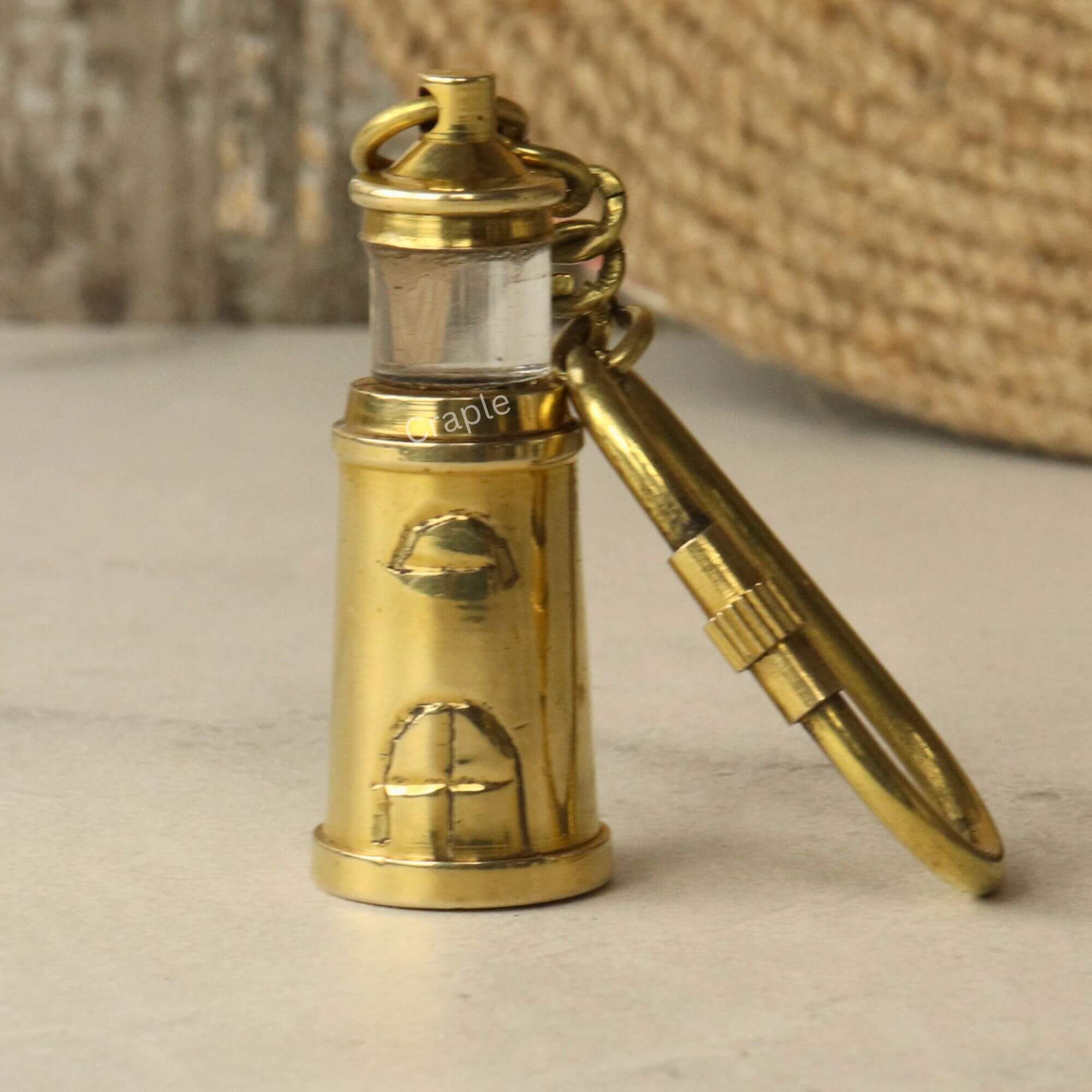 Shine a light on your keys! This detailed shiny brass lighthouse keychain is a charming miniature replica. A solid and eye-catching nautical accessory or a thoughtful gift for lighthouse lovers and coastal dreamers.
