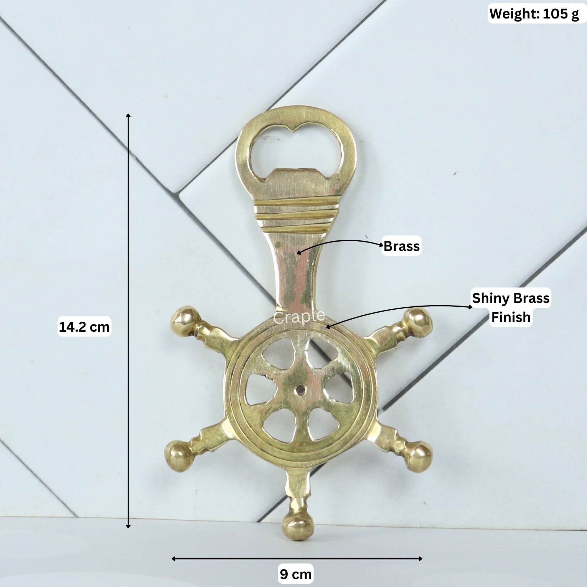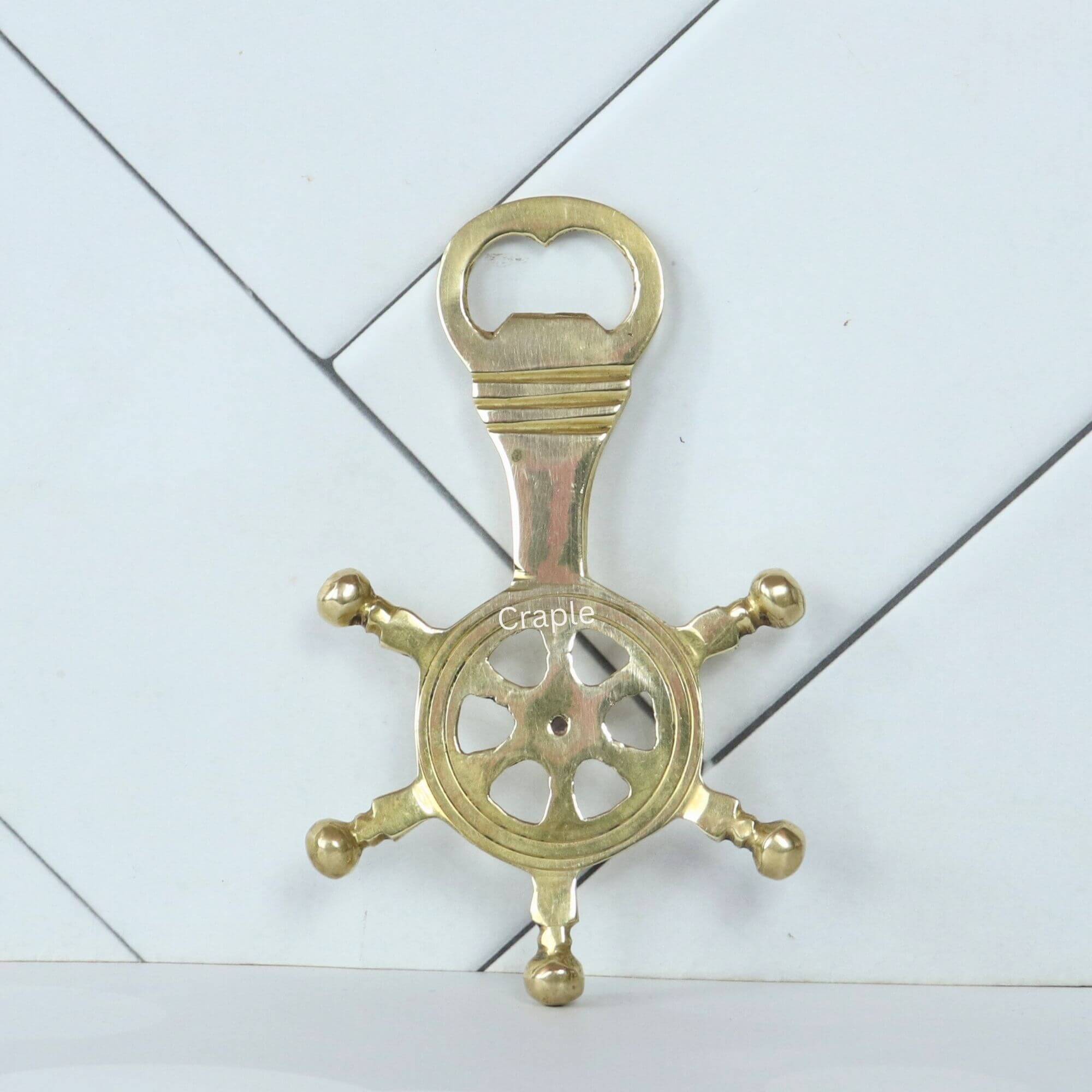 Pop open your favorite beverages with nautical flair using this solid brass ship wheel bottle opener. Its unique design and shiny finish make it a standout bar accessory and a perfect gift for boating enthusiasts or coastal decor lovers.