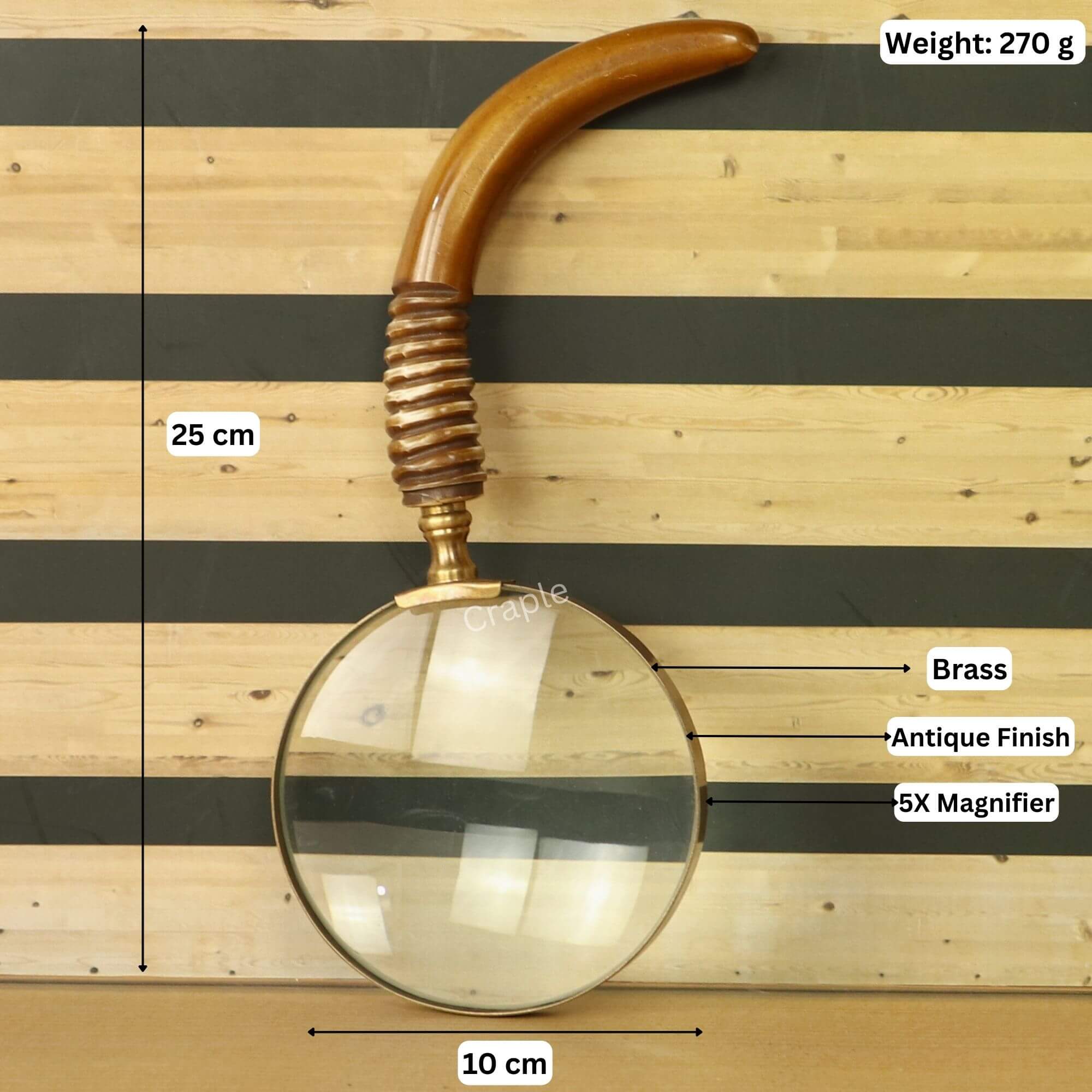 - Lustrous Brass Frame: The high-shine, polished brass surrounding the lens creates a beautiful contrast with the wood-toned handle and ensures durability.