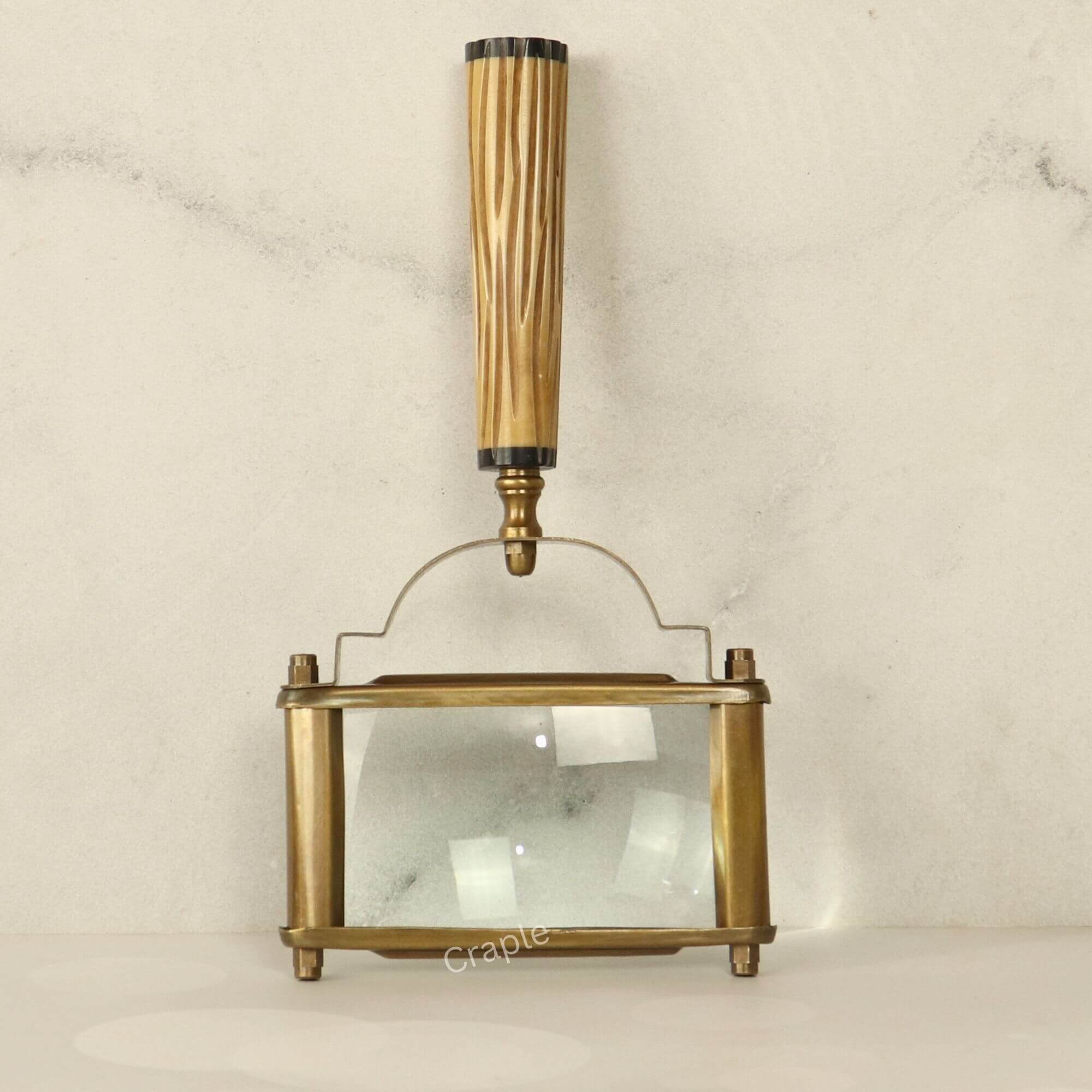 - Material: Brass (Frame), Glass (Lens), Resin (Handle)