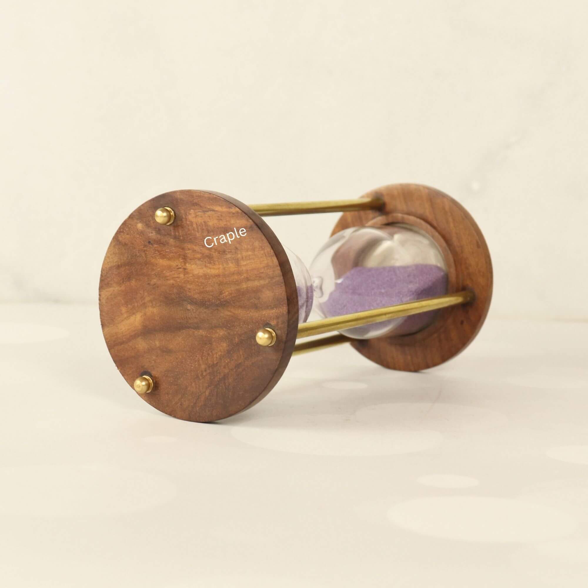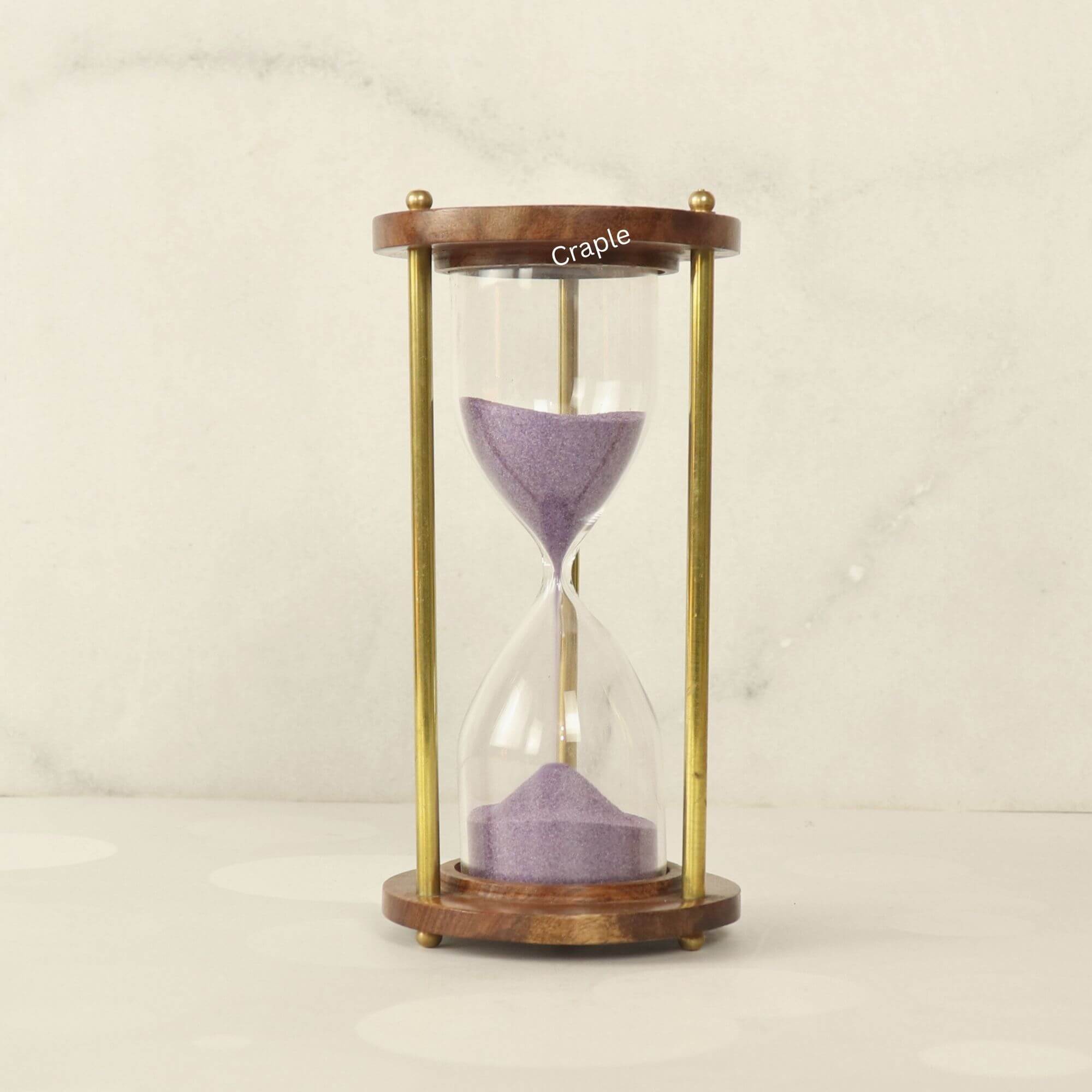 Vintage Brass & Wood 5 Min Hourglass | Purple Sand